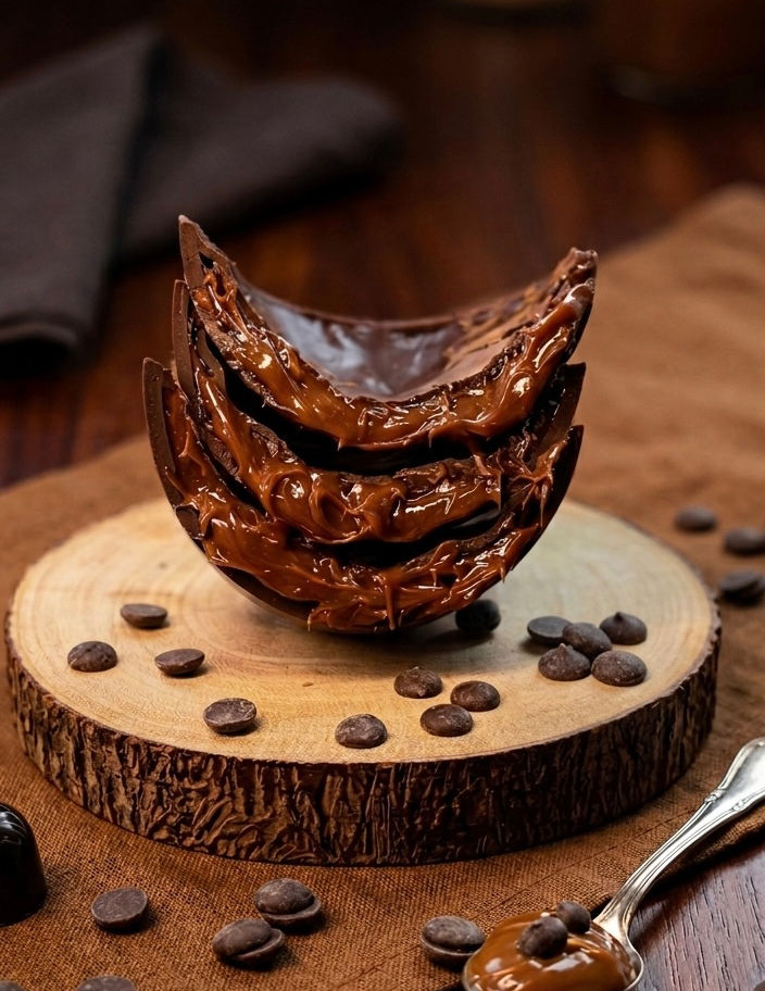 A rich 65% dark chocolate shell, generously filled with lots and lots (and lots!) of the finest Argentinian Dulce de Leche—smooth, velvety, and utterly indulgent. Every bite is a perfect harmony of deep cocoa richness and luscious caramel sweetness.